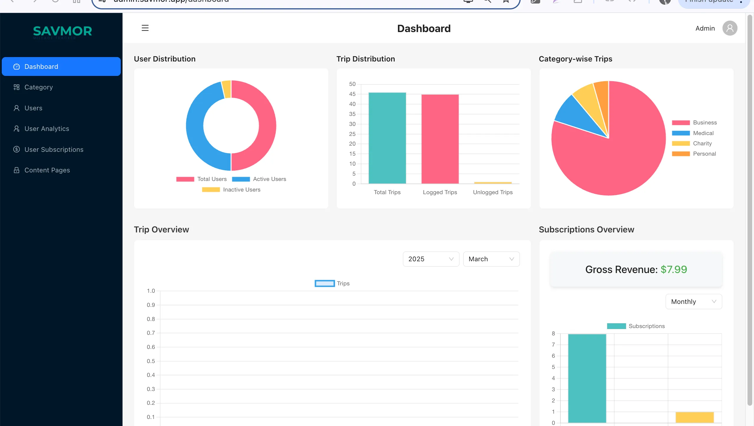 CATEGORY Dashboard YEAR 2022 I developed the SavMor Admin Dashboard using Next.js and TypeScript, ensuring a seamless and efficient user experience. My role included